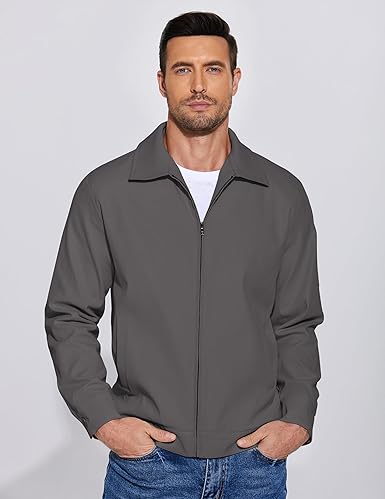 COOFANDY Men's Lightweight Jackets Cotton Casual Jacket Zip Up Eisenhower Coat Work Golf Outwear- Charcoal